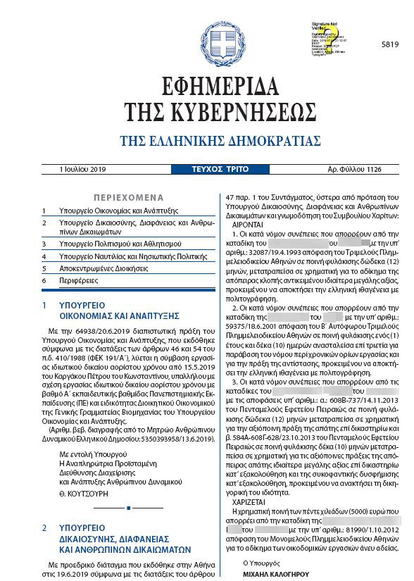 αλλοδαπούς με καταδίκες για μεταφορά παράτυπων μεταναστών στην χώρα μας, απόπειρα κλοπής και αντίσταση, για να πολιτογραφηθούν Ελληνες πολίτες.