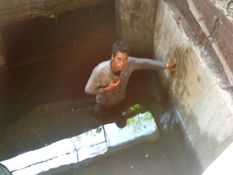 Στο σημείο έσπευσε και η αστυνομία όπου διενεργεί προανάκριση. Στη φωτογραφία διακρίνεται ο 20χρονος Μαροκινός που βρίσκεται μέσα στο πηγάδι.
